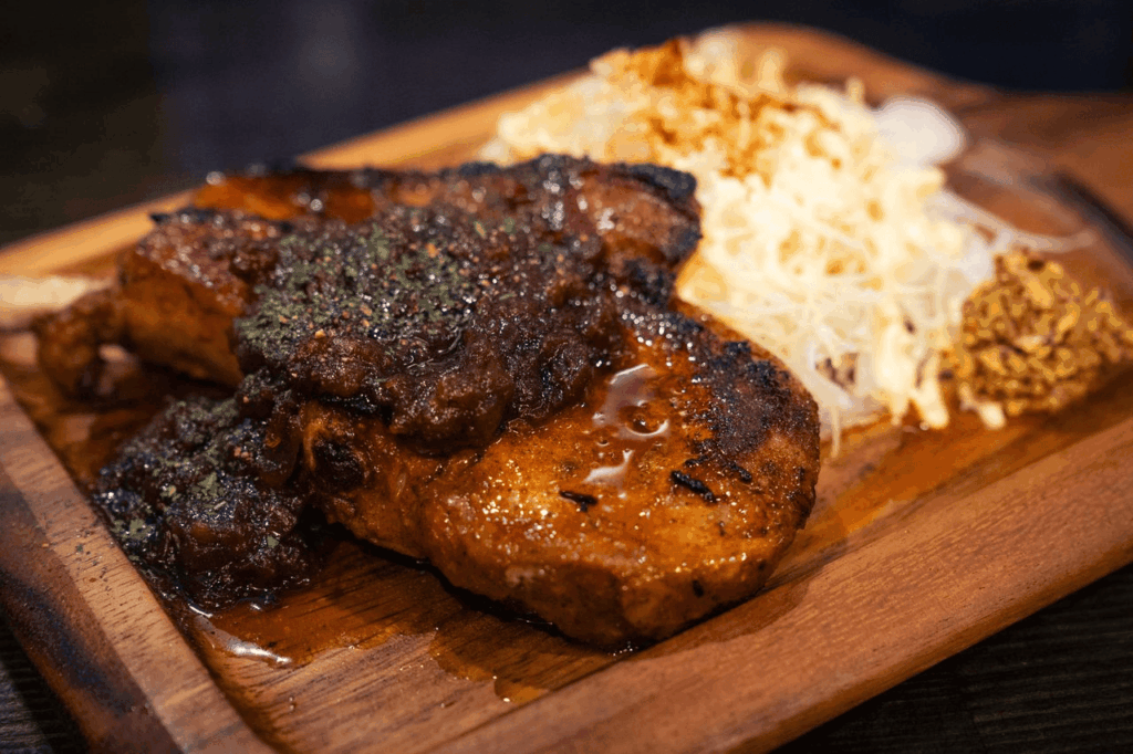 400g超の大きな「やわらか骨つきポークリブ」(税込1,500円)は、15種類のスパイスを配合したオリジナルの“ラブ”で味付けしています。たっぷりかかった特製オニオンソースが、ジューシーなポークリブととにかく合うんです。切り分けても豪快にかぶりついても、満足感をたっぷり味わえる一皿です。