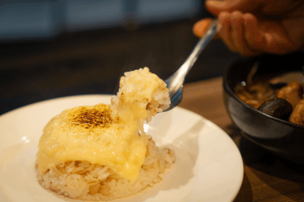 ライスに入っている押し麦がプチプチとした食感で、トロりととけたチーズとスープカレーとの相性は抜群です。