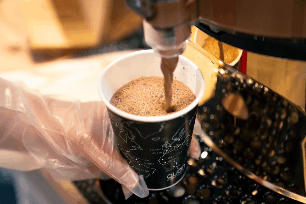 チョコレートドリンク「ショコラショー」は、ホットとアイスの2種類(ホット=税込465円、アイス=税込443円)。使用するチョコレートの品種やカカオ分は日替わりで、香りや甘さの違いを楽しむリピーターも多いそうです。