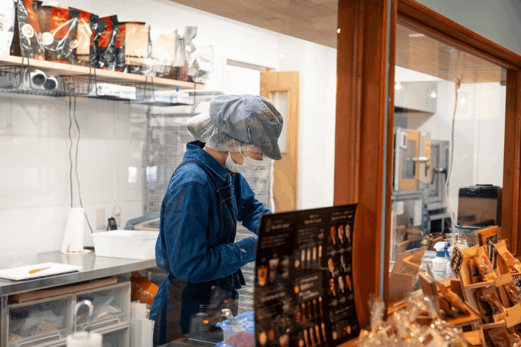 お店では年齢や経歴もさまざまなスタッフたちが、それぞれの得意なことを活かしながら働いています。製造や包装、接客など丁寧に楽しそうに分担している姿が印象的でした。